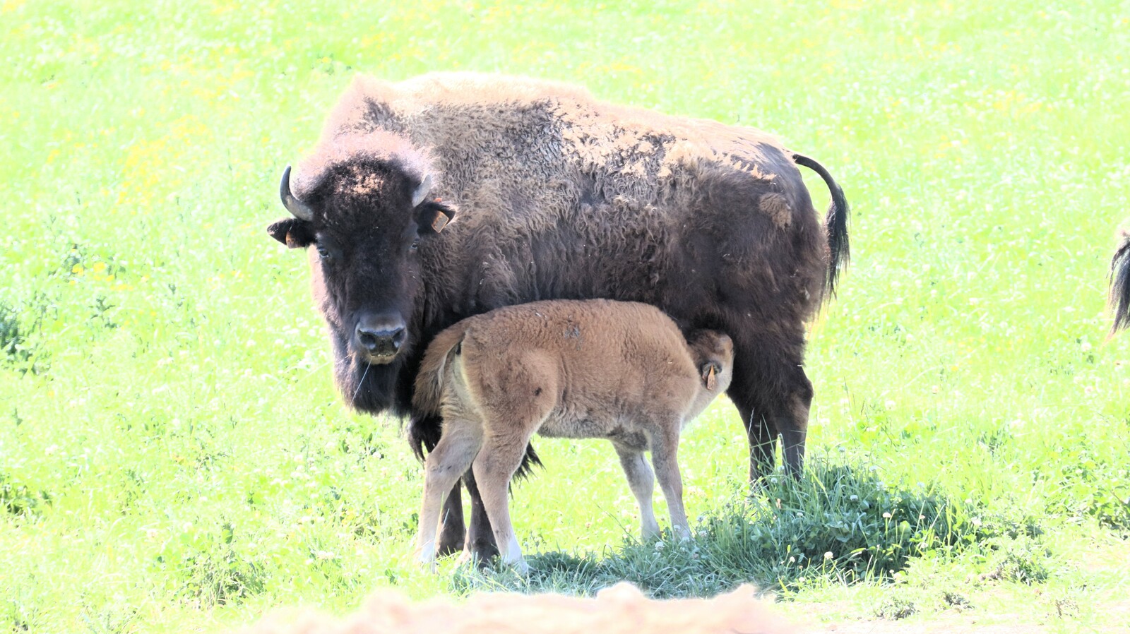 Le temps était venu d'aller visiter l'élevage de bisons pour lequel nous sommes venus. Nous embarquons dans une remorque spécialement adaptée pour ces visites. Remorqué par un tracteur, nous sommes conduits à travers les chemins et les champs jusqu’aux enclos dans lesquels se trouvent les bisons. Les premiers que nous apercevons sont les jeunes qui sont groupés dans un premier enclos. Un peu plus loin, nous découvrons plusieurs prés où se trouvent le reste des quelques 90 à 100 bêtes qui composent l’élevage. De retour à la ferme, nous visitons l'espace de vente tenu par Aurore qui nous présente les différents produits commercialisés sur l’exploitation. Après avoir réglé notre repas et notre visite et avoir remercié nos hôtes pour l’excellente journée que nous avons passée, il est temps de se préparer à reprendre la route pour rentrer à Bourges. Comme à l'accoutumée nous nous disons au revoir avant de partir car les participants vont se séparer au fur et à mesure de l'approche de Bourges, en fonction de leur lieu de d'habitation.