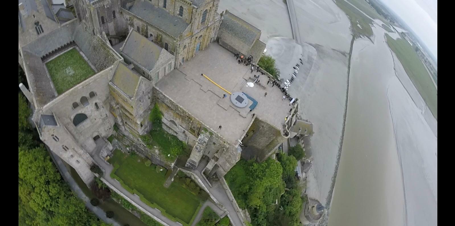 A l'occasion des commémorations des 80 ans de la fin de la seconde guerre mondiale, un parachutiste de la FCD se pose sur la terrasse du Mont Saint Michel.