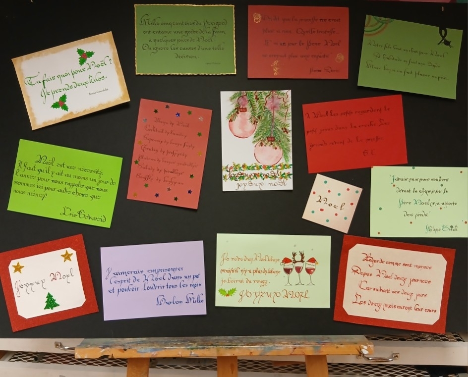 Noël 2025. Les calligraphes débutants et confirmés, ont tous réalisé une oeuvre dans l'esprit de Noël.