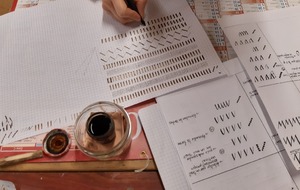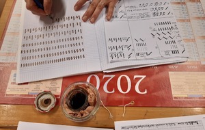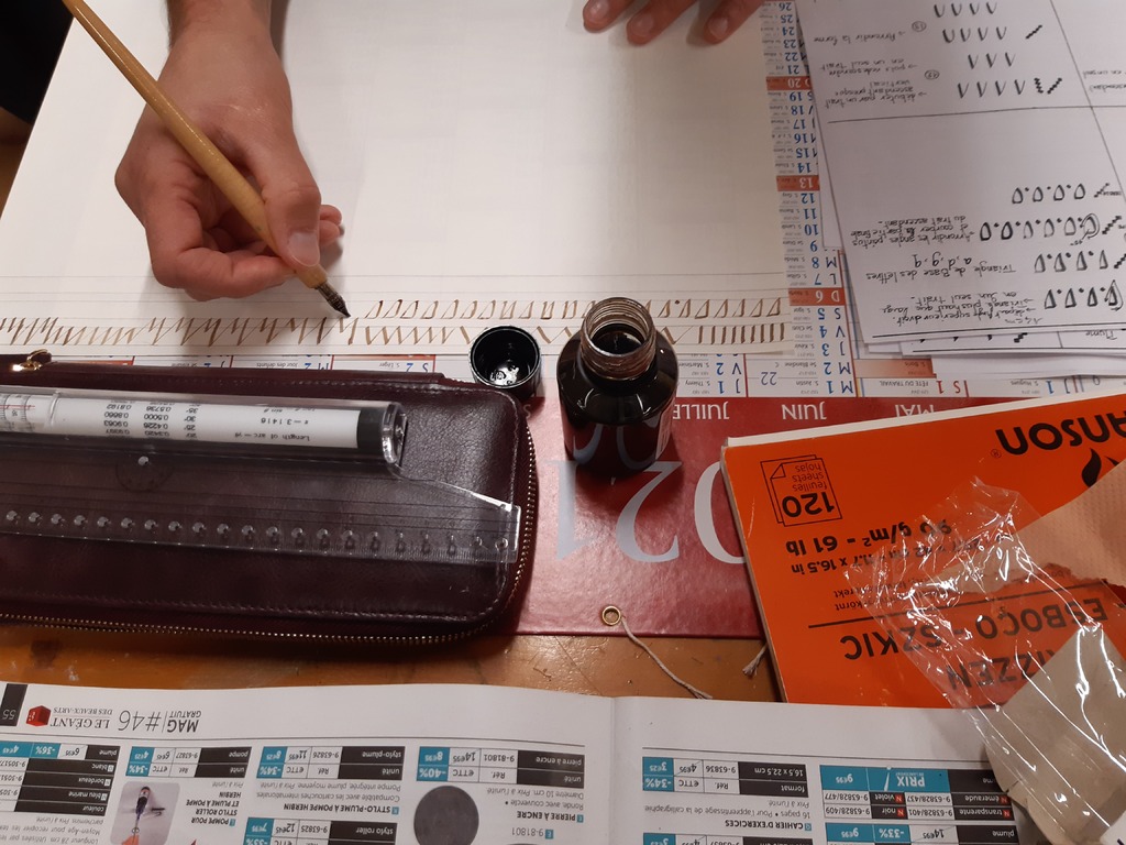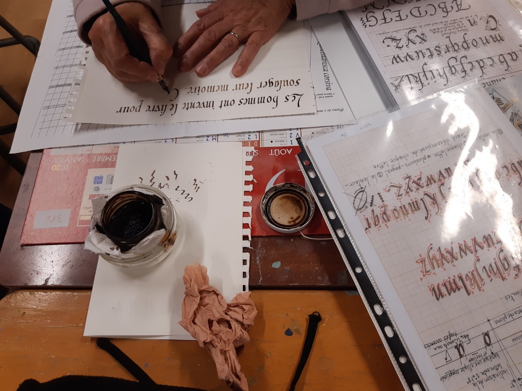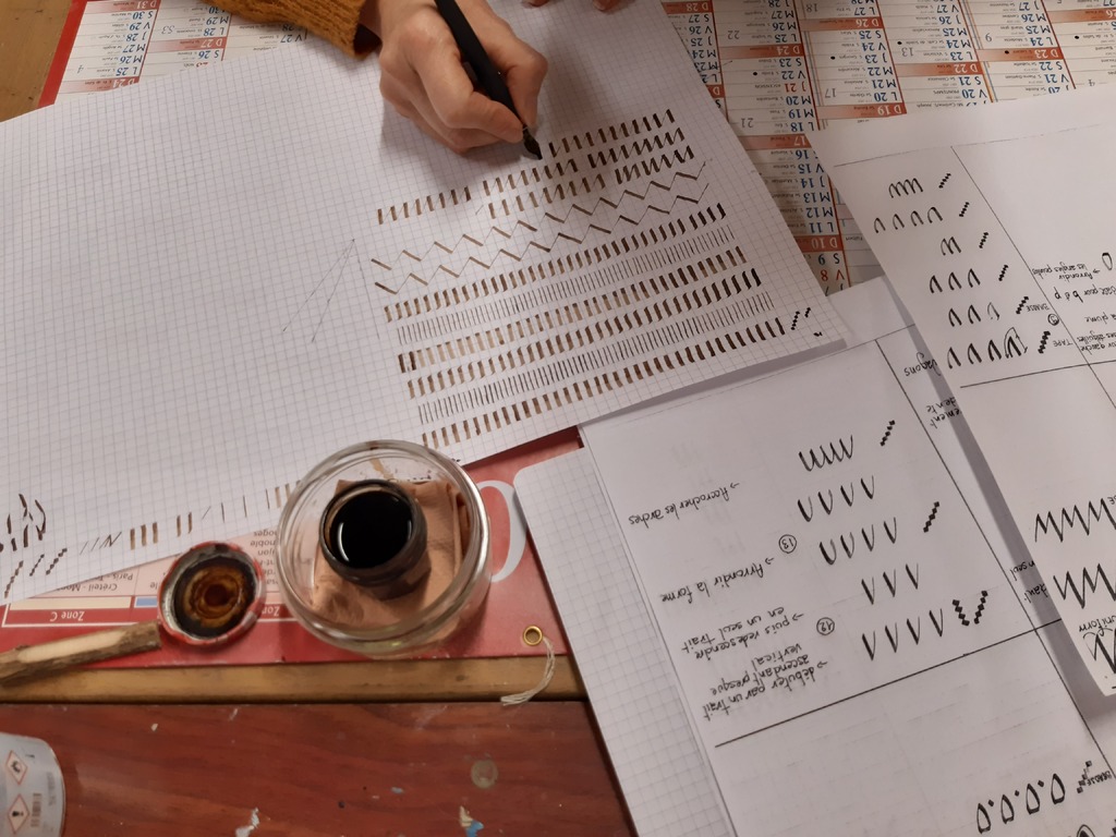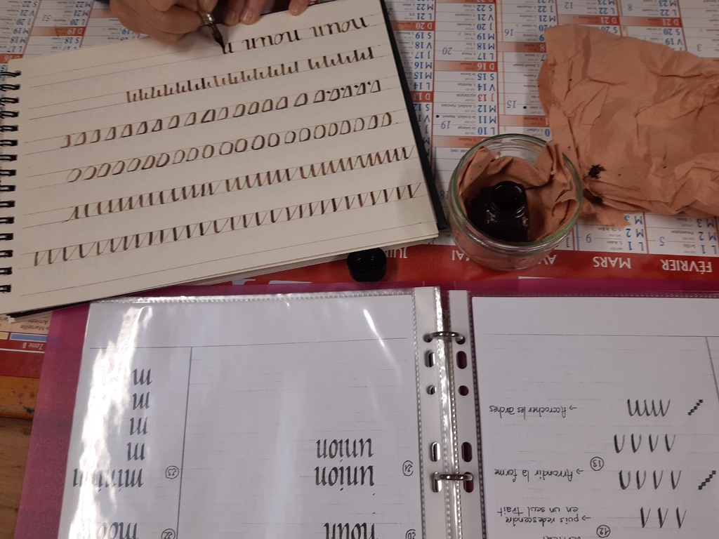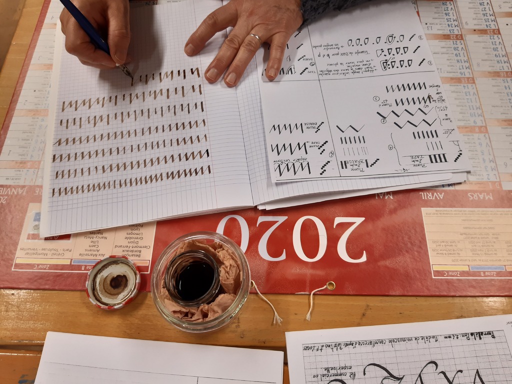 Travaux d'écriture pour apprivoiser la plume et découvrir une nouvelle écriture : la chancelière.